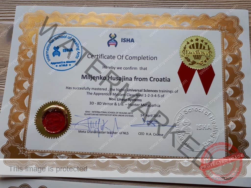 Bioresonance Certificate, Become officially a Master of The Worldwide ISHA family !